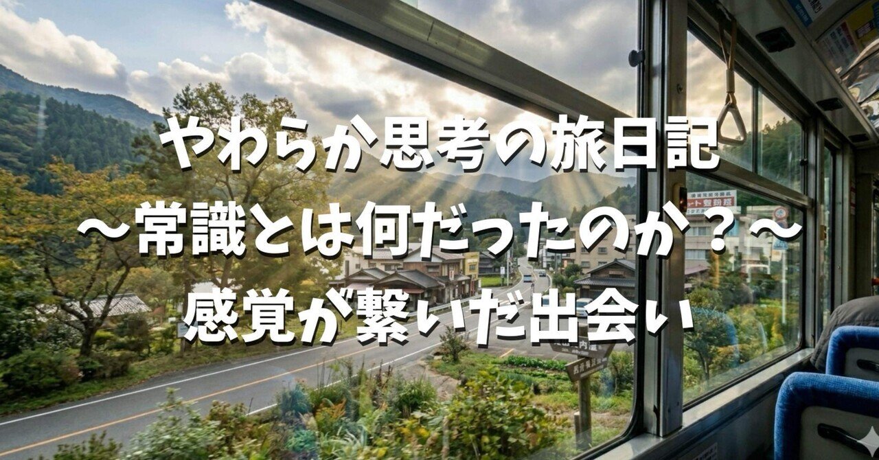 やわらか思考の旅日記〜感覚が繋いだ出会い 2026-04-02 最終更新日時 : 2026-04-02 jiyudo やわらか思考の旅日記〜常識とは何だったのか?〜感覚が繋いだ出会い|自由道場@生活の〝遊び〟を取り戻すシェアnote 感覚は知っている 前回の旅では 少しずつ感覚を意識するようにしたら 直感を信じられるようになったと 書きましたが、、、 やっぱり感覚は知ってるんだな〜って… 実際… note(ノート)